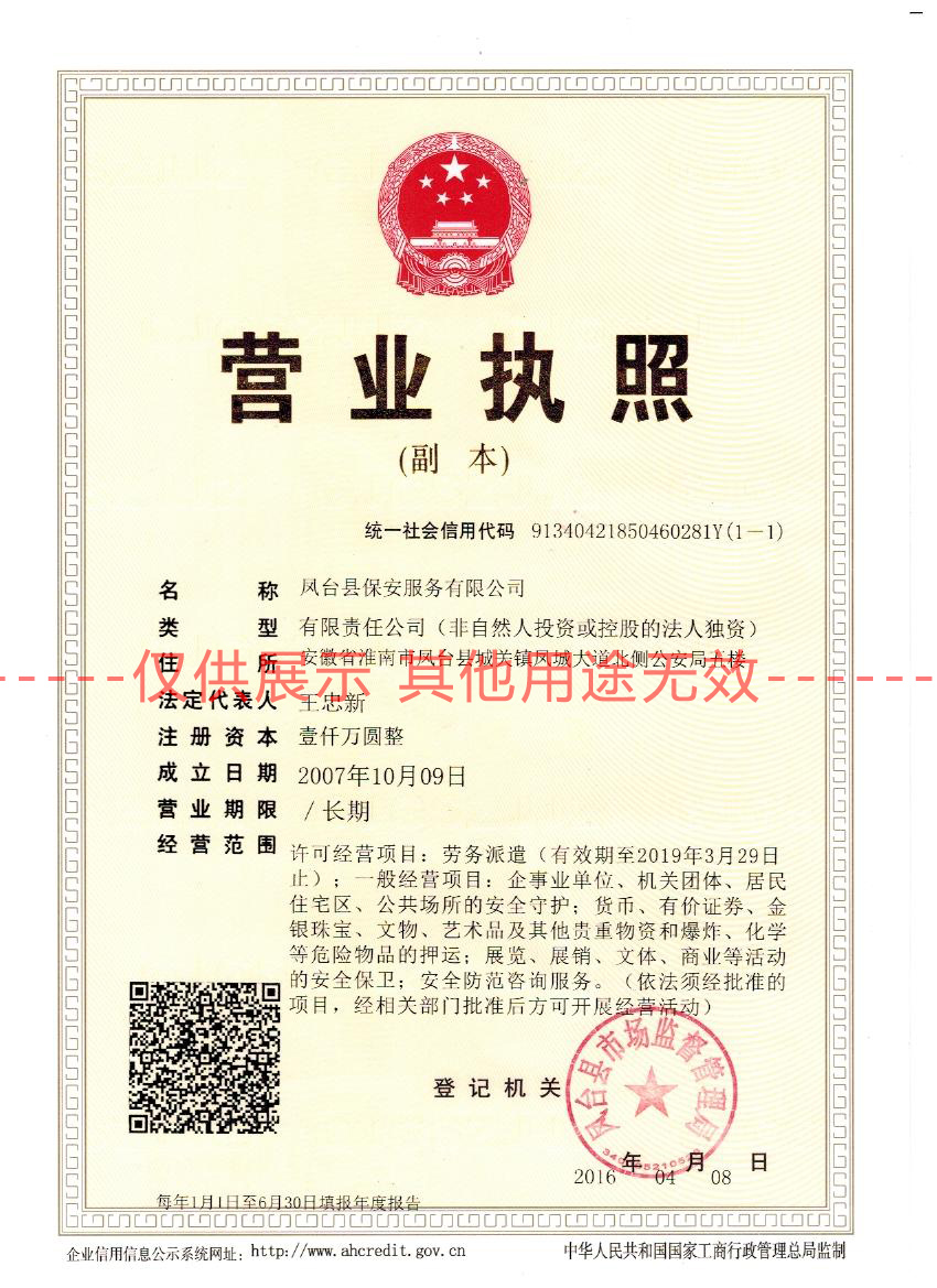 齊備的國家資質(zhì)認(rèn)證保安服務(wù)許可證